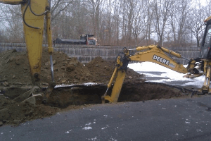 The images are examples of services offered by Gill Services such as environmental cleanup, tank removal, and tank installation.